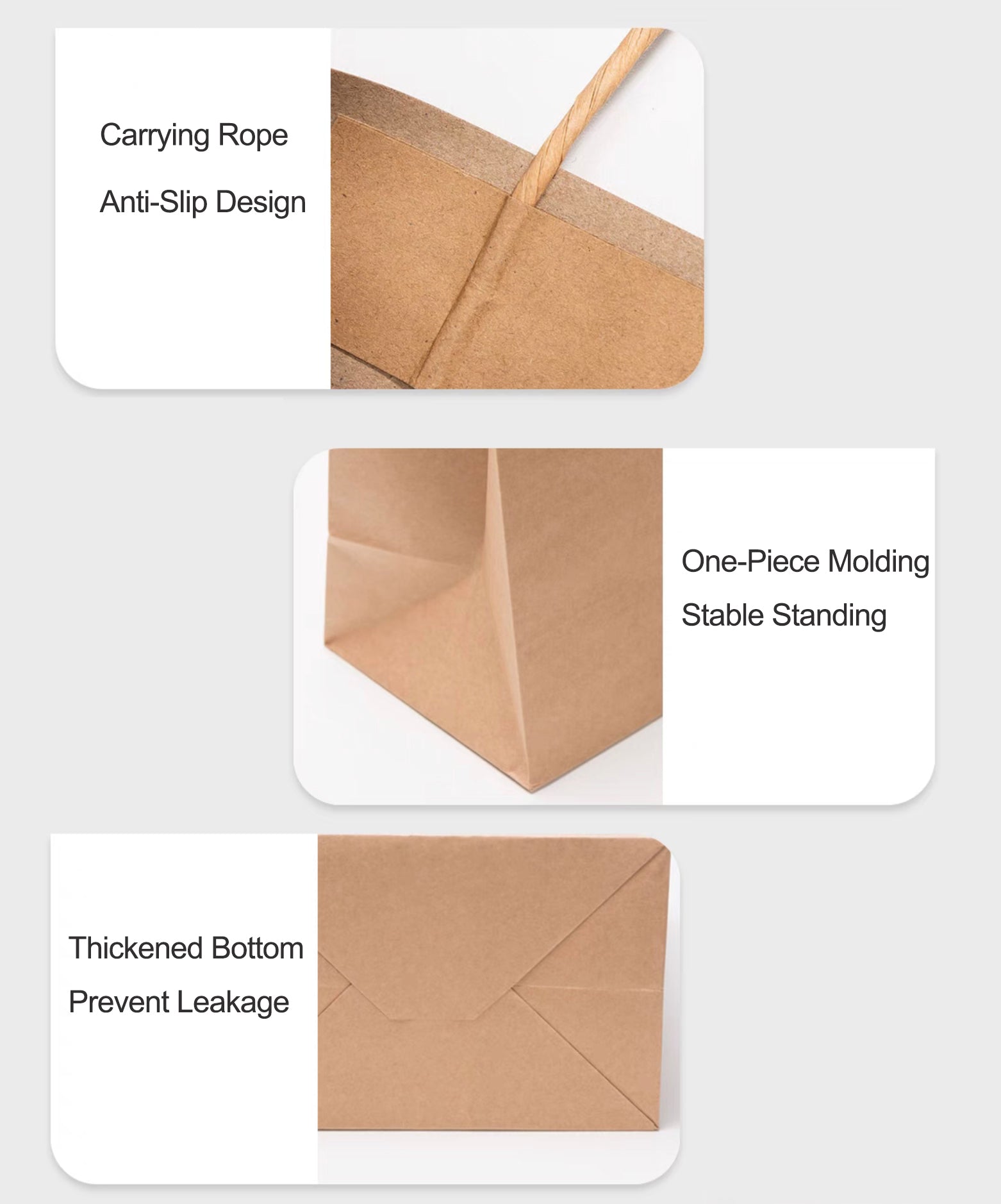Paper Shopping Bags with Handles, Brown and White